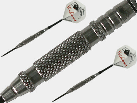 Laserdarts Silver Widow moveable point steel tip darts are the most desired dart among steel-tip dart professionals for over 20 years! Like its infamous namesake, this fierce competitor will make short work of your adversaries... spinning a web of accuracy and destruction they'll not forget! From Point To Shaft, the Widow incorporates many innovative concepts. Unlike its sister darts, the Black Widow and Gold Widow, which both have special non-slip vapor coatings, Silver Widows are sleek and feature a natural feel knurl grip! The barrels have a lifetime guarantee (Coating and normal wear excluded) and are made in the USA. Comes complete with 2ba shafts, flights, and a dart case (Case may vary with stock availability).