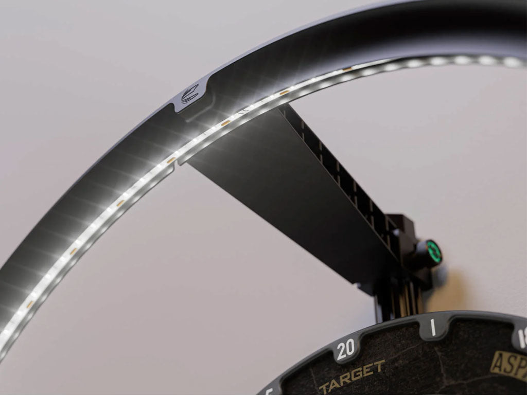 The MOD HALO is designed to illuminate your dartboard perfectly and stylishly. Its updated sleek design and sturdy build offer a more permanent lighting solution. With 123 individual LED lights, the Halo provides consistent lighting regardless of ambient room lighting. It can be attached to the MOD RAILS using 1 or 2 legs depending on your specific setup.