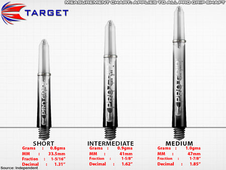 The Pro Grip Shaft is one of the most popular shafts in the world. It is specially molded to provide a smooth lead-in and offers fantastic strength in gripping flights to reduce fallouts. The Pro Grip shaft also features a nib by the shaft petals, making it easier to slide your flights into the shaft. Made from a specially formulated nylon compound, the Pro Grip shafts are incredibly durable. Each Pro Grip shaft is also supplied with a Target Pro Grip ring for added flight grip.